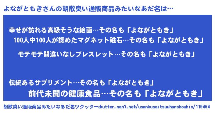 よながともきさんの胡散臭い通販商品みたいなあだ名をツクッター!