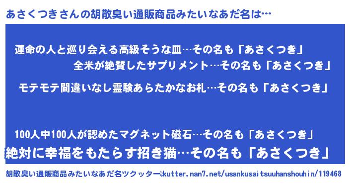 | ヒーロー風カッコイイあだ名 | 『スーパーアサクツキ』『ネオアサクツキ』 |