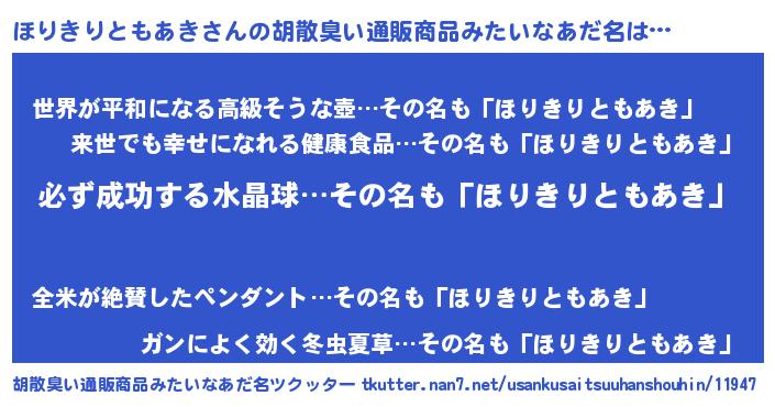 | 肩書あだ名 | 『ほりきりともあき店長』 |