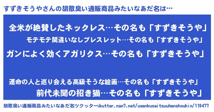 | ヘコむあだ名 | 『すずっ子』『すずきそうや(笑)』 |
