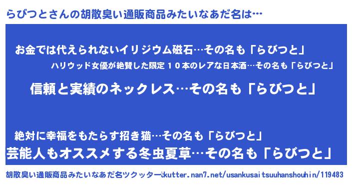 | ヘコむあだ名 | 『らびっ子』『らびつと(小並感)』 |