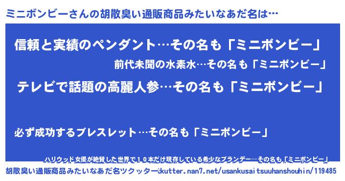 | 意味不明あだ名 | 『自称ミニボンビー』 |