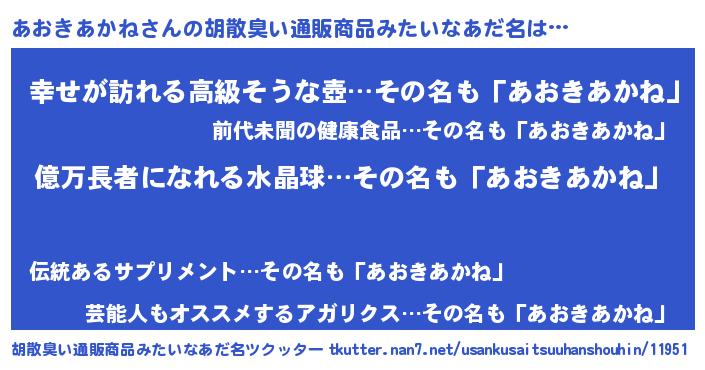 | 男性向けラノベタイトル風あだ名 | 『あおきあかねに滅ぼされるだけの簡単なお仕事です』 |