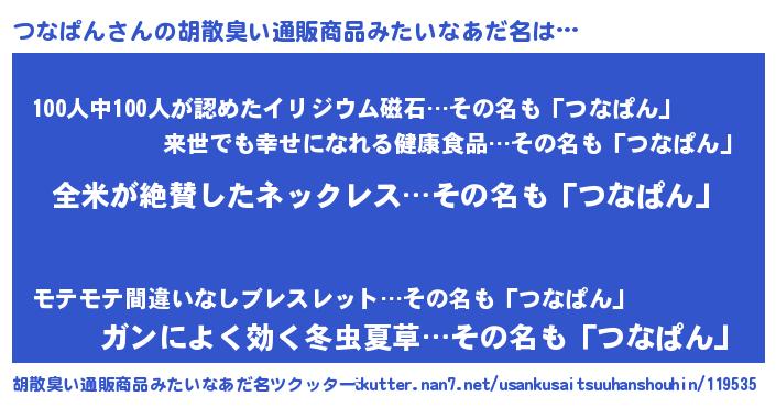 | 意味不明あだ名 | 『とにかく怪しいつなぱん』 |