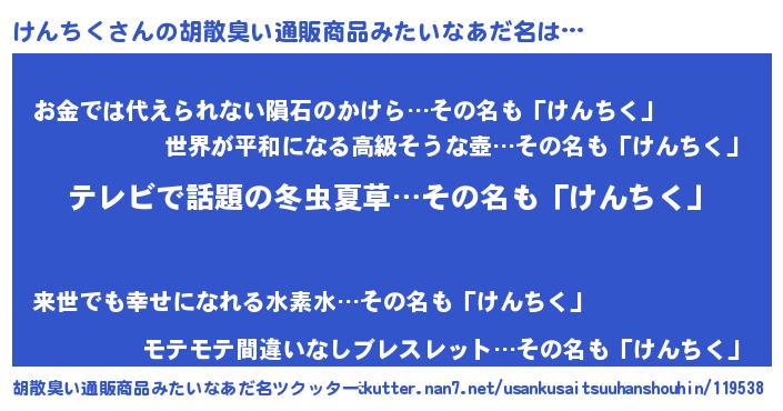 | 可愛いあだ名 | 『けんぷりん』『けんうちぇる』 |