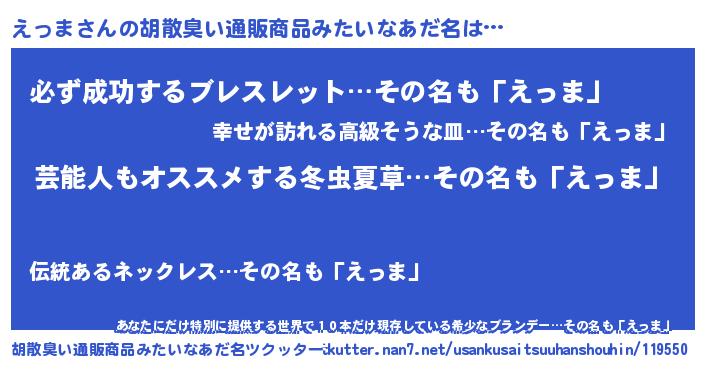 | 欧米人風あだ名 | 『トリンドルえっま』『マイケルえっま』 |