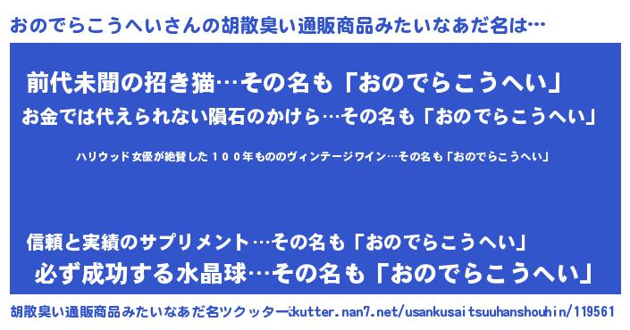| 欧米人風あだ名 | 『ダレノガレおのでらこうへい』 |