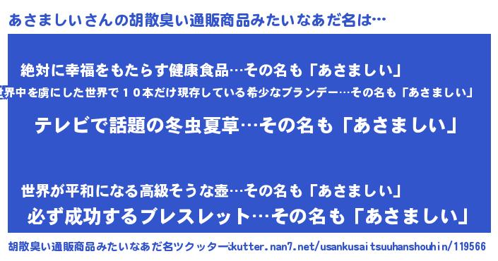 | 恥ずかしいあだ名 | 『アサマシイデラックス』『あさちん』 |