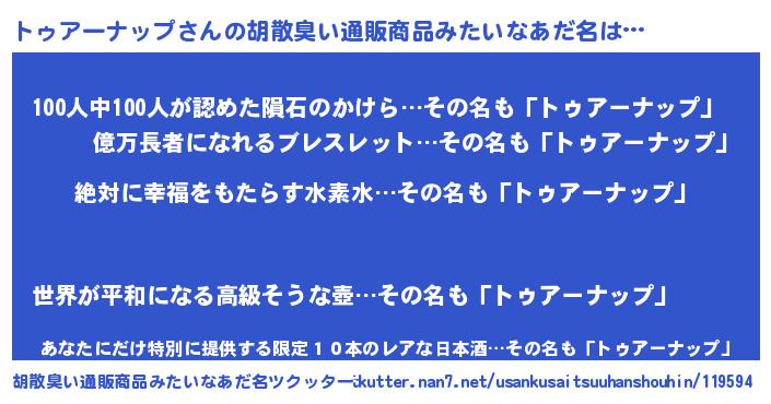 | 意味不明あだ名 | 『永久保存トゥアーナップ』 |