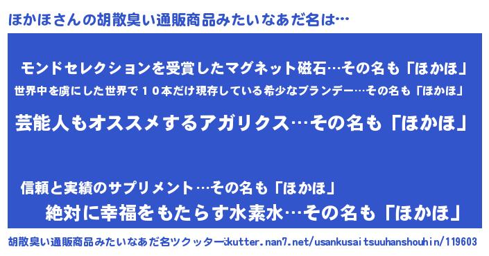 | ヘコむあだ名 | 『ほかほ(爆)』『ほかお』『ほかもー』 |