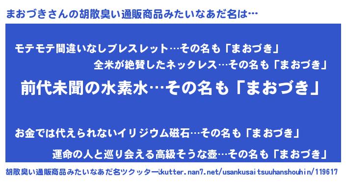 | ヘコむあだ名 | 『まおづき(震え声)』『まおにゅー』 |
