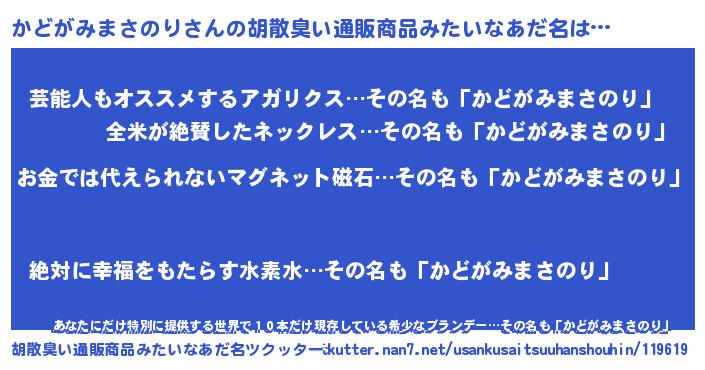 | 肩書あだ名 | 『かどがみまさのり助教授』 |