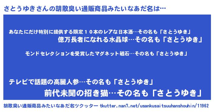 | ヘコむあだ名 | 『さとうゆき(笑)』『さとにゅー』 |