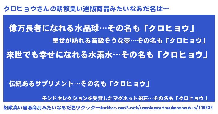 | ヘコむあだ名 | 『クロヒョウ(遠い目)』『クロにゅー』 |