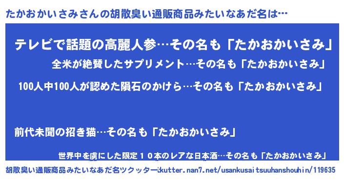 | ヒーロー風カッコイイあだ名 | 『友情の使者たかおかいさみ』 |