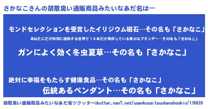 | ヘコむあだ名 | 『さかぷりん』『さかなこ(遠い目)』 |