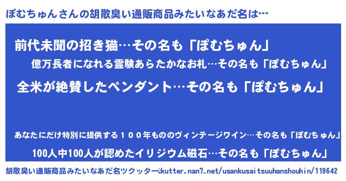 | 意味不明あだ名 | 『とにかく怪しいぽむちゅん』 |