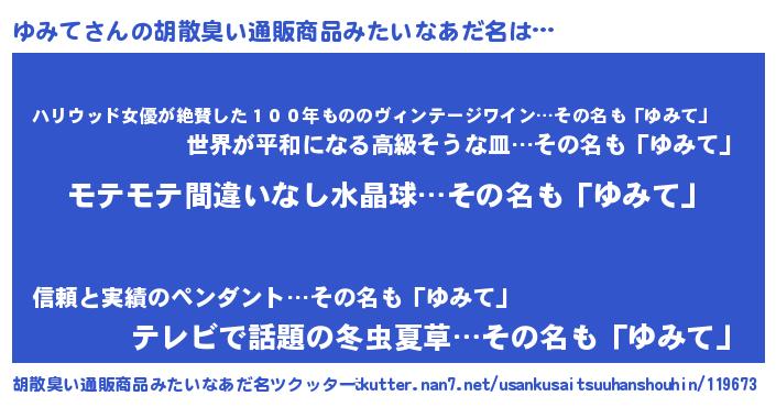 | 恥ずかしいあだ名 | 『プリティーゆみて』『ユミテデラックス』 |