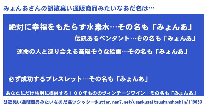 | ヒーロー風カッコイイあだ名 | 『ウルトラみょんあマン』『ネオミョンア』 |