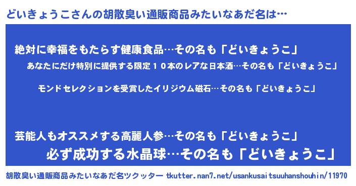 | ヘコむあだ名 | 『どいきょうこ(笑)』『どいにゅー』 |