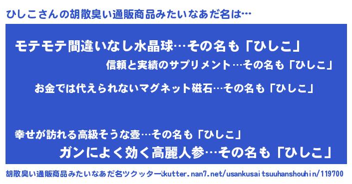 | ヒーロー風カッコイイあだ名 | 『愛の使者ひしこ』『スーパーヒシコ』 |