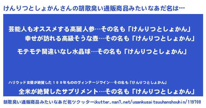| ヘコむあだ名 | 『けんにゅー』『けん太郎』 |