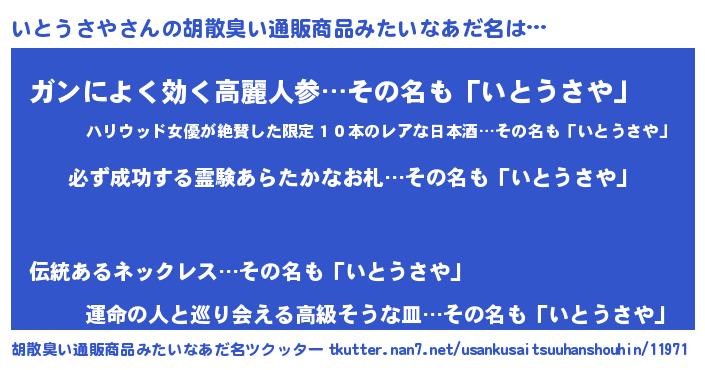 | 伝説のあだ名 | 『伝説のスナイパーいとうさや』 |
