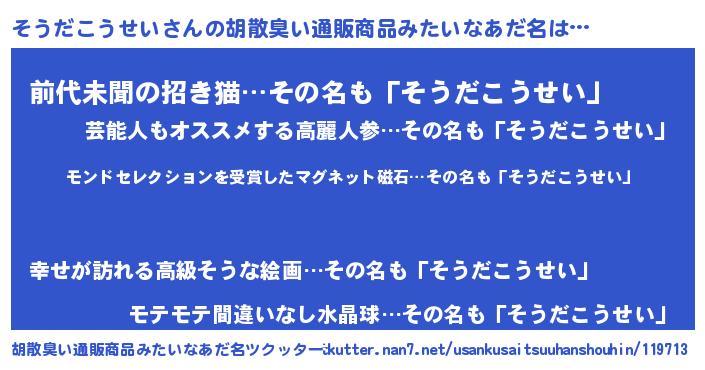 | 肩書あだ名 | 『そうだこうせい教授』 |