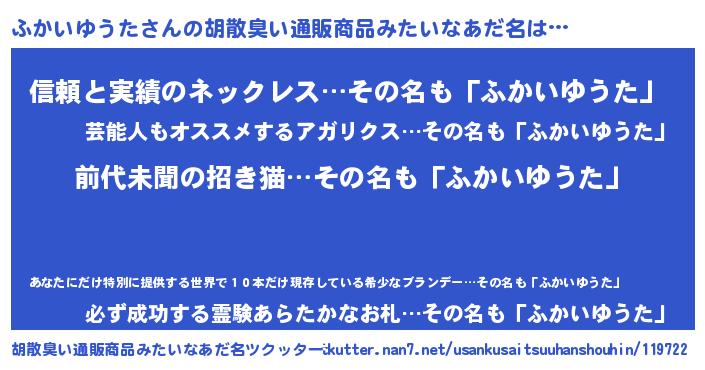 | ヘコむあだ名 | 『ふかいゆうた(笑)』『ふか太郎』 |