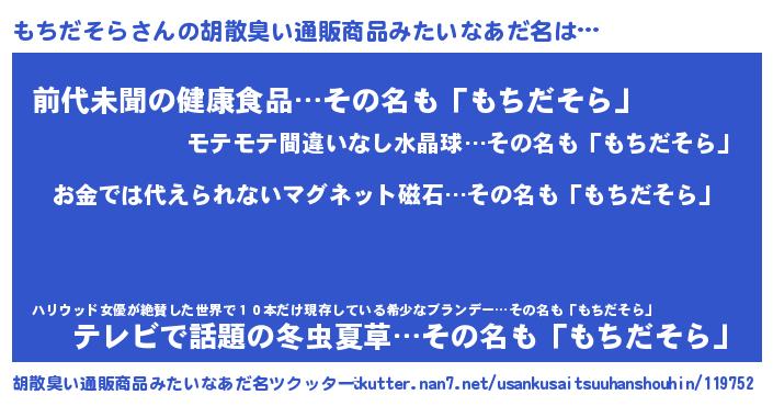 | ヘコむあだ名 | 『もちだそら(小並感)』『もちにゅー』 |
