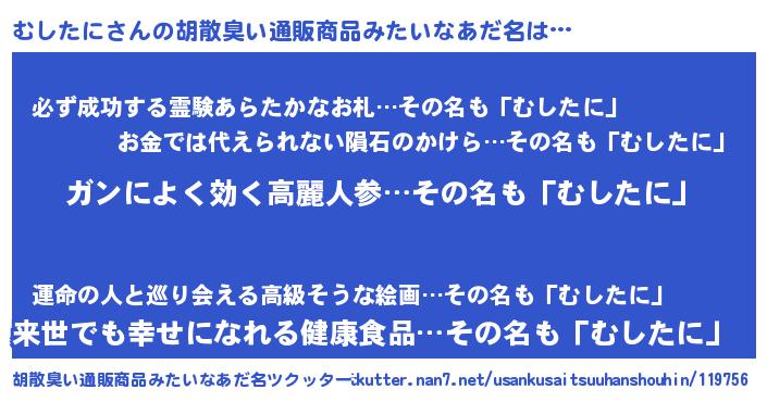 | 意味不明あだ名 | 『自称むしたに』『ペロリンむしたに』 |