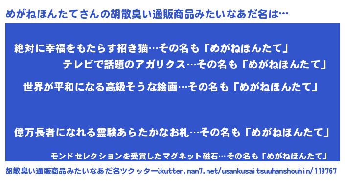 | ヘコむあだ名 | 『なまこ酢』『めがねほんたて(震え声)』 |