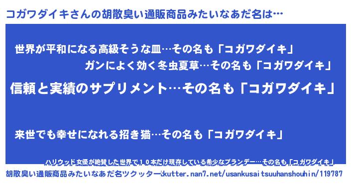 | 意味不明あだ名 | 『とにかく怪しいコガワダイキ』 |