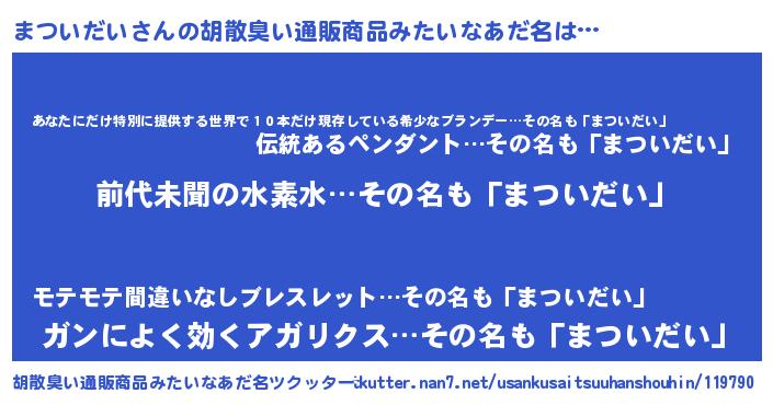 | 意味不明あだ名 | 『永久保存まついだい』『自称まついだい』 |
