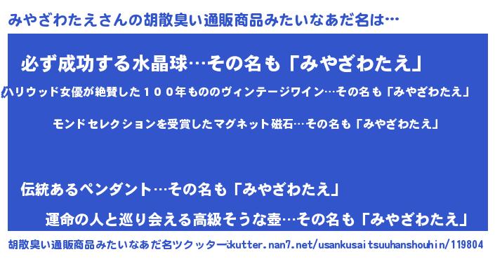 | 意味不明あだ名 | 『眠気覚ましガムみやざわたえ味』 |