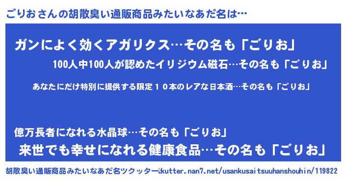 | 意味不明あだ名 | 『住所不定無職ごりお(53歳)』『自称ごりお』 |
