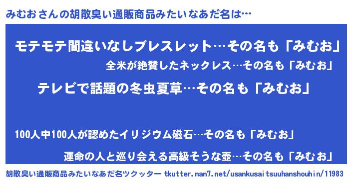 | 意味不明あだ名 | 『自称みむお』『ペロリンみむお』 |