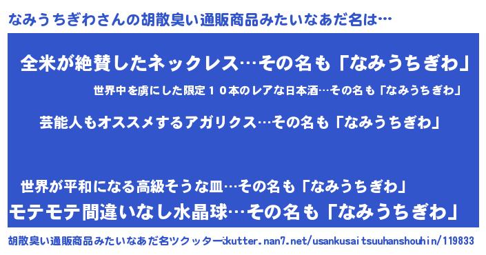 | 意味不明あだ名 | 『自称なみうちぎわ』 |