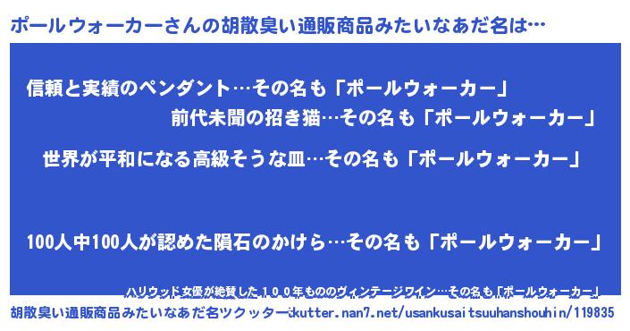 | 男性向けラノベタイトル風あだ名 | 『やはりポールウォーカーの青春ラブコメはまちがっている 』 |