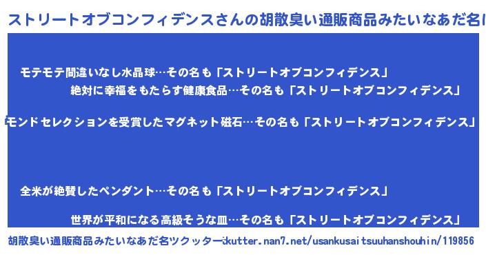 | 肩書あだ名 | 『ストリートオブコンフィデンス教授』 |