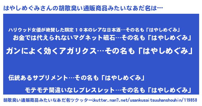 | 意味不明あだ名 | 『自称はやしめぐみ』 |