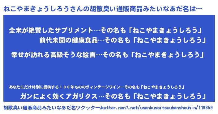 | 意味不明あだ名 | 『ねこやまきょうしろうフォーエバー』 |