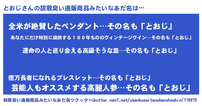 | 意味不明あだ名 | 『とおじフォーエバー』『自称とおじ』 |