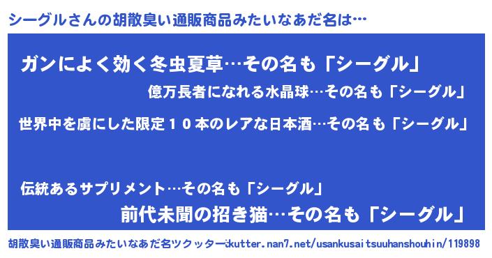 | 意味不明あだ名 | 『住所不定無職シーグル(41歳)』 |