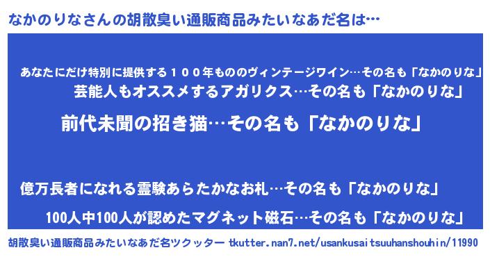 | 意味不明あだ名 | 『永久保存なかのりな』『自称なかのりな』 |