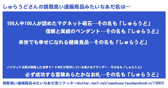 | 意味不明あだ名 | 『永久保存しゅらうど』 |