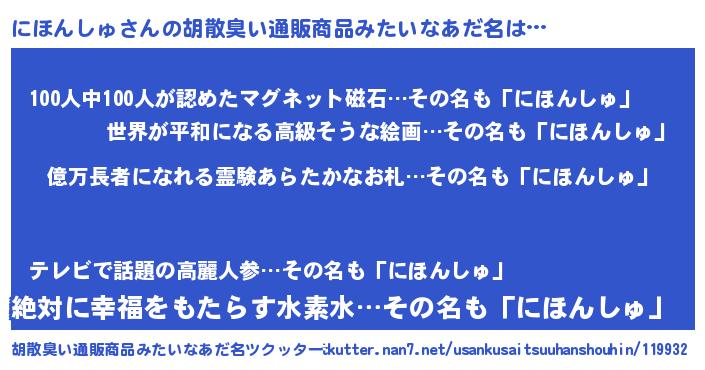 | ヒーロー風カッコイイあだ名 | 『スーパーニホンシュ』『ネオニホンシュ』 |