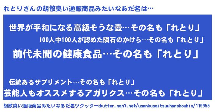 | ヘコむあだ名 | 『れとり(笑)』『つくし』『れとっぺ』 |