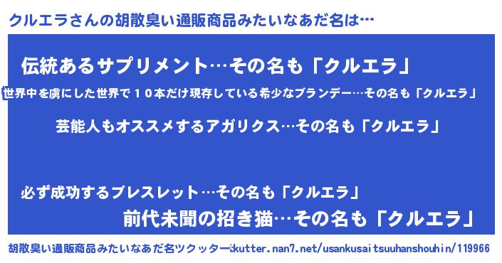 | ヒーロー風カッコイイあだ名 | 『究極戦士クルエラ』『魔戒騎士クル』 |