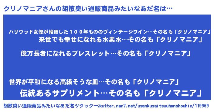 | 肩書あだ名 | 『クリノマニアCEO』『クリノマニア教官』 |
